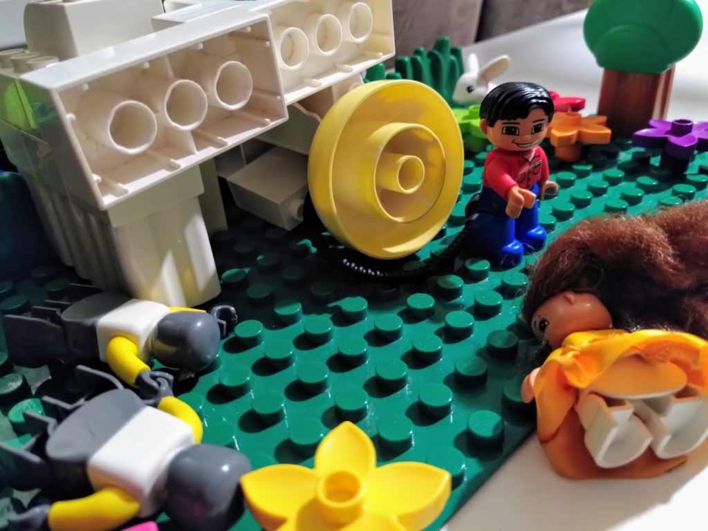 En the making of…: Eerst heb je een idee: Met Duplo het paasverhaal uitbeelden. Dan verdeel je het paasverhaal in verschillende hoofddelen (waarbij je ook veel stukken overslaat). Dan maak je een grove schets: Welke plaatsen bouw ik na voor deze scènes? We hebben ze ‘staties’ genoemd, verwijzend naar de 14 kruiswegstaties, en tegelijk erop doelend dat het momentopnamen zijn. Een heel verhaal wordt in één beeld gevangen.
