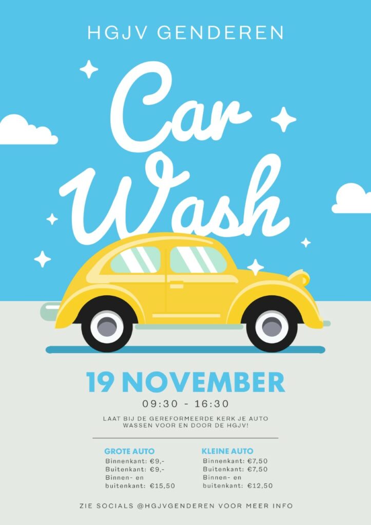 We moeten er helaas weer aan gaan geloven, het nazomerse weer lijkt nu toch echt op zijn einde te komen. Aan de andere kant biedt dat ruimte voor de herfst. Het vallende blad, mooie kleuren en… vieze auto’s. In ons mooi poldergebied ontkomen we er nu eenmaal niet aan. Gelukkig wil de HGJV je met dit probleem helpen middels een Car Wash!Op zaterdag 19 November tussen 9.30 uur en 16.30 uur staan wij op het Gereformeerde Kerk terrein voor u klaar om uw auto te wassen tegen een kleine vergoeding. Grote of kleine auto’s, binnen- en buitenkant, wij zorgen ervoor dat uw auto weer van voor tot achter blinkt! De opbrengsten zullen voor de HGJV zijn om de kosten van deze prachtige jongeren vereniging verder te kunnen dekken. Kosten grote auto: Binnenkant €9,- Buiten €9,- Binnen en buitenkant €15,50 Kosten kleine auto: Binnenkant €7,50 Buitenkant €7,50 Binnen en buitenkant €12,50 We zien uw vieze auto graag tegemoet, tot dan!