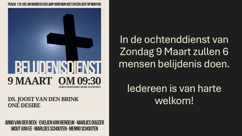 Zondagochtend 9 maart zijn 6 gemeenteleden voornemens om belijdenis te doen:
