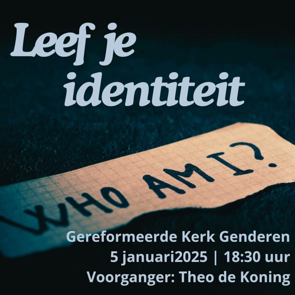 Zondagavond 5 januari: gemeentedienst met thema ‘Leef je identiteit’ met voorganger Theo de Koning Gemeentedienst: Leef je identiteit