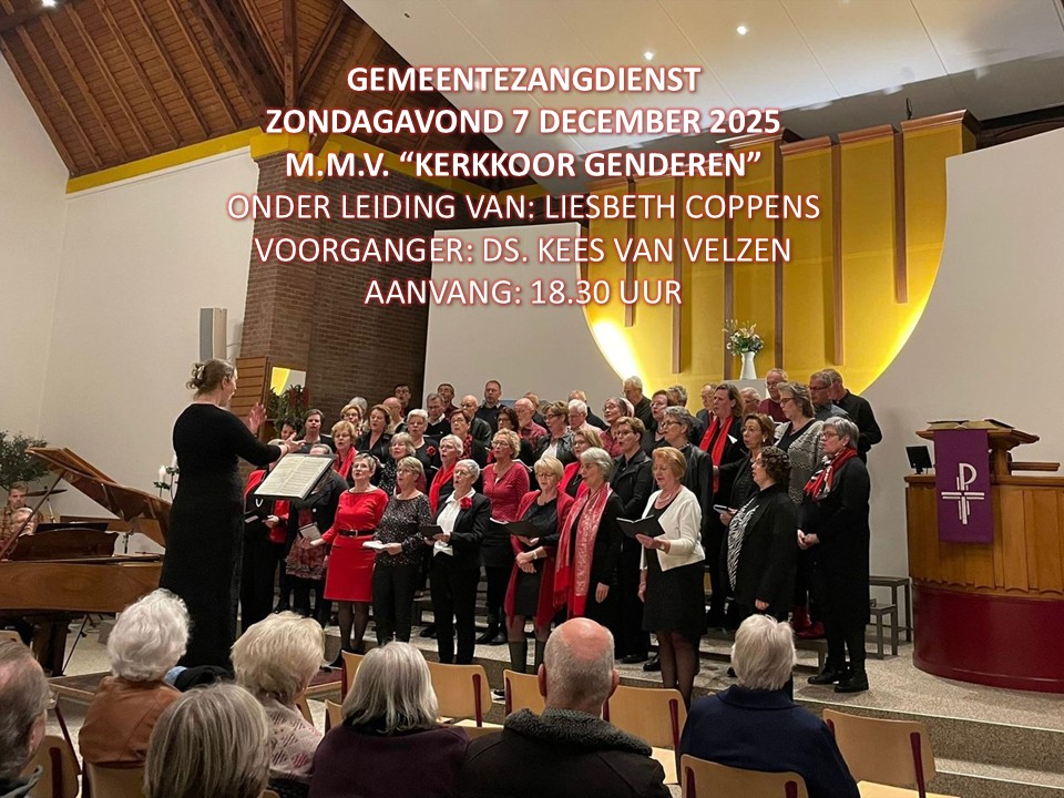 Zondagavond 6 december verleent ons Kerkkoor Genderen medewerking aan de avonddienst: Gemeentedienst met Kerkkoor Genderen