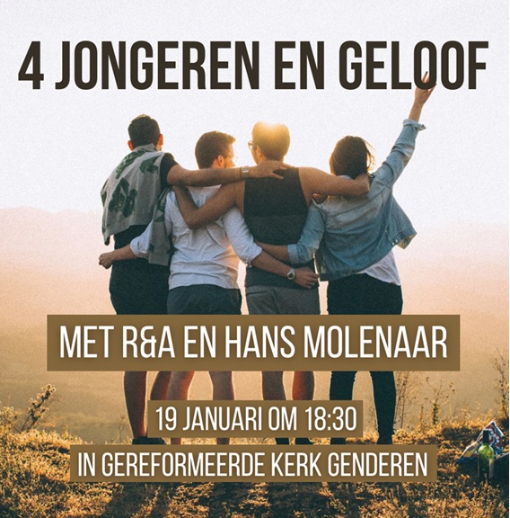 Zondagavond 19 januari weer jeugddienst met voorganger (en leraar van verschillende tieners) Hans Molenaar en met muzikale medewerking door R&A.